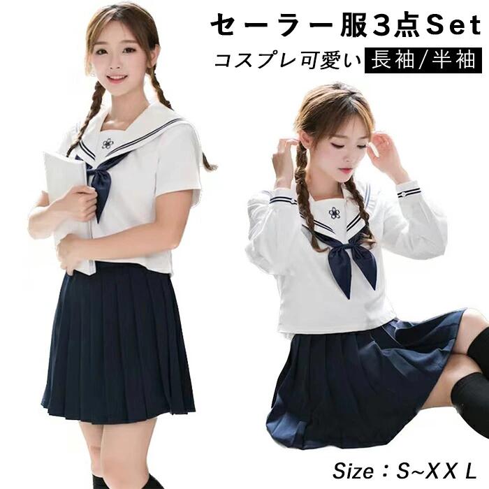 セーラー服 3点セット ハロウィン 制服 コスプレ ハロウィン セーラー服 半袖 長袖 大きいサイズ マリン スカート 衣装 セクシー コスチューム 仮装 レディース かわいい 可愛い 大きいサイズ セット 一式 こすぷれ イベント パーティー Osaka Haru