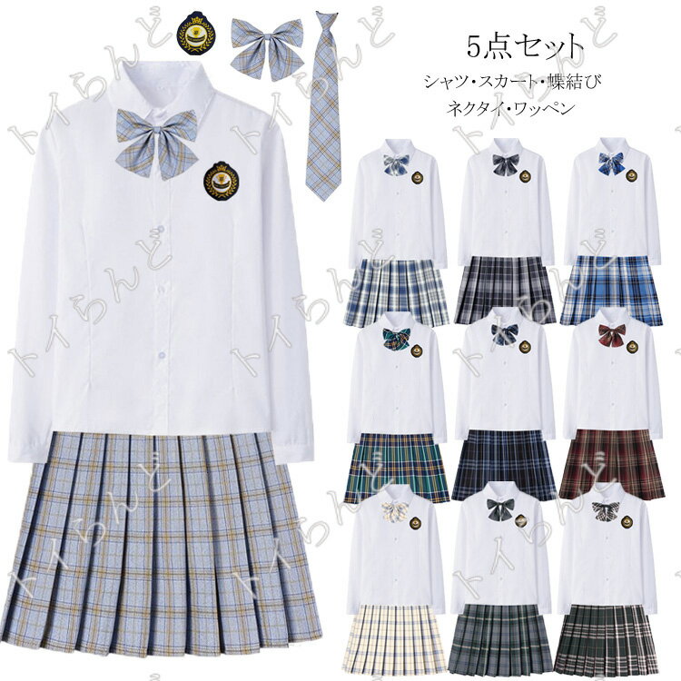 ★現役JK支持率No.1制服3点セット★ 商品説明 累計15,000着突破中!!!!現役JKを中心に大人気の制服3点セット☆「誰でも可愛く着れるシルエット」「学校にも安心の高品質」「学校以外も大活躍」のポイントにこだわった1着!シャツは柔らかく着心地のいい素材を使用。ウエスト部分をタイトにすることで、スカートをインした時のくしゃっと感を無くして美シルエットを実現!!リボンは細かいデザインにこだわった可愛くてスカートの柄に一番合うものをチョイス☆定番のチェックスカートは一番可愛いカラーの組み合わせに!裾の処理もちゃんとしています。放課後やテーマパークでも映え必至☆ サイズ S/M/L/LLサイズ ・シャツ 着丈:61/64/65/68cm / バスト:47/48/50/53cm / 袖丈:54/56/58/60cm 肩幅:36/37/40/41cm / 袖口:10/11/12/13cm / 裾幅:48/50/52/54cm ・スカート 着丈:35/37/39/41cm / ウエスト:30/32/34/36cm 素材 ・シャツポリエステル:80% 綿:20% ・スカートポリエステル:62% レーヨン:35% ポリウレタン:3% 仕様 透け感:シャツあり 伸縮性:なし ポケット:なし 裏地:なし モデル AMI:150cm(Sサイズ着用) ももあ:151cm(Sサイズ着用) ちゃんかお:154cm(Mサイズ着用) 藤木そら:156cm(Mサイズ着用) 備考 ・生産の都合上、柄にばらつきがございます。あらかじめご了承ください。 ・モニタ性能により、色合いが画像と若干異なる場合がございます。 ・商品の生地によって折りジワや畳みジワができる場合がございます。 ・シワのある場合はシワの部分にスプレーで軽く水を吹きかけ、ハンガーにかけて乾かすと改善されます。 ※生地によってはシワが取りきれない可能性がございます。 ・アイロンをかける際は商品タグの品質表示に注意してください。 ・生地の特性上、やや匂いが強く感じられるものもございますので、あらかじめご了承ください。★現役JK支持率No.1制服3点セット★