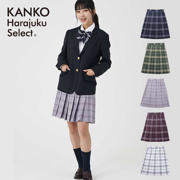 【ポイント5倍!12/1(月)限定】 制服 スカート チェック プリーツ 【 日本製 】 紺 青 緑 赤 ネイビー グリーン グレー エンジ 丈 48cm 高校生 スクール スカート プリーツ スカート 洗える 学生 学生服 女子 中学生 高校生 送料無料 カンコー KHS205