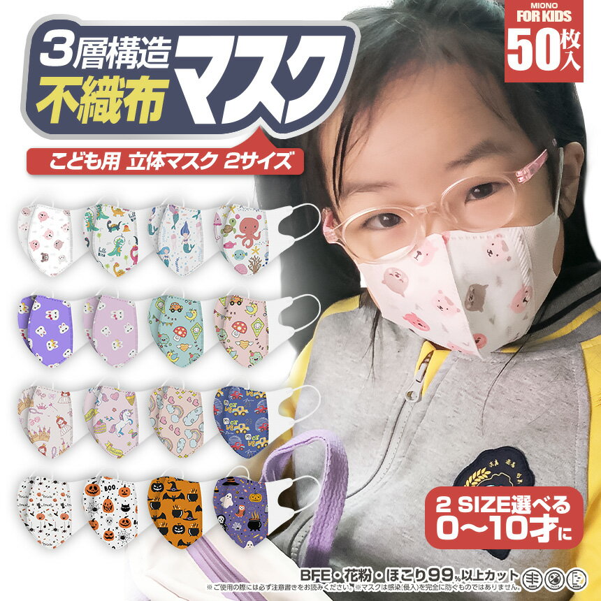 【人気マスク10%OFFクーポン】★子供用マスク 絵柄マスク 立体マスク ★【PFE/BFE/VFE/99.9% KAKEN検査済み 】【50枚】 あす楽 マスク 3Dマスク 不織布マスク 子供マスク 子どもマスク キッズマスク お子さんマスク カートン柄 アニマル柄 桜柄