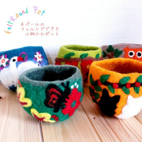 フェルト雑貨 小物入れ ラウンドポット ネパールフェルト雑貨 ウール フェルト アジアン雑貨 北欧雑貨
