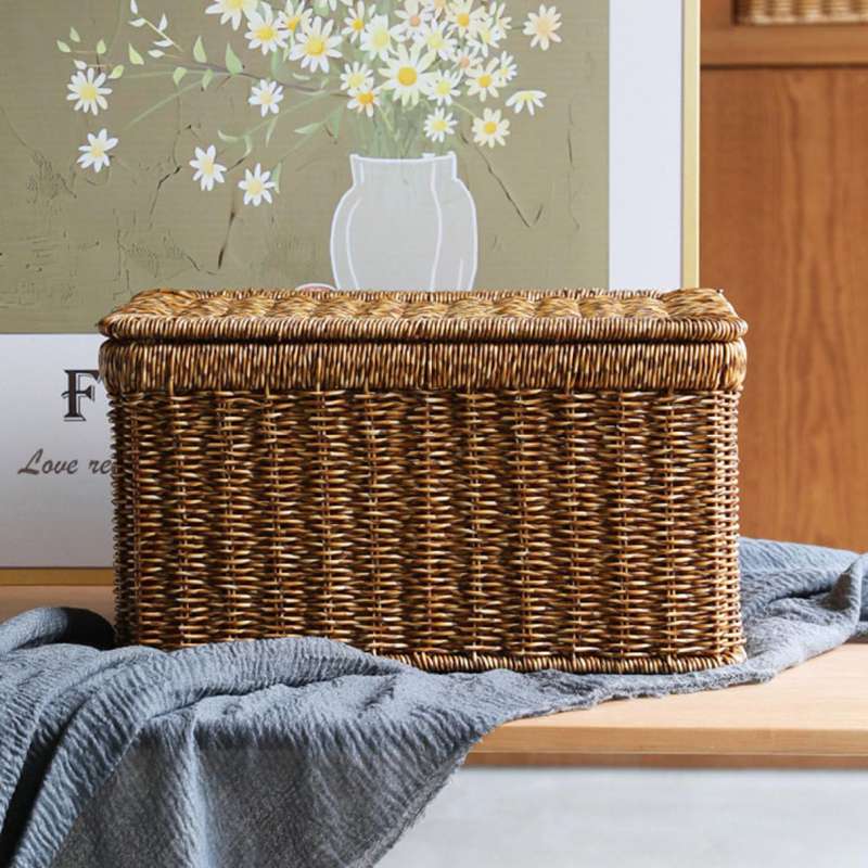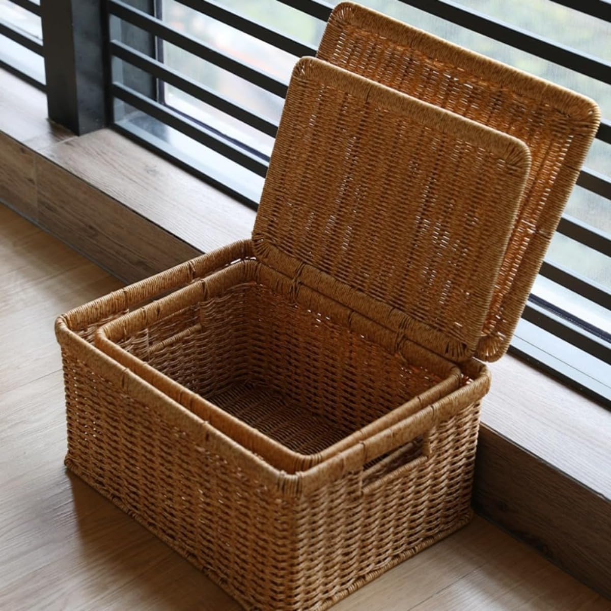 フタ付き 収納ボックス かご バスケット 収納かご ランドリー ふた付き 北欧雑貨 籠 ふたつき 蓋付き おしゃれ アジア 小物入れ ふたつき 蓋つき 大きい S 編み 籐 ラタン 小物収納 カゴ 多目的 卓上収納 モカ色1 衣類収納 靴下収納 (L,ライトブラウン)