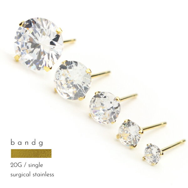 ピアス つけっぱなし ステンレス サージカルステンレス 医療用ステンレス 316L スタッド 立て爪 20G ゴールド キュービックジルコニア シンプル 華奢 片耳用 両耳用 メンズ