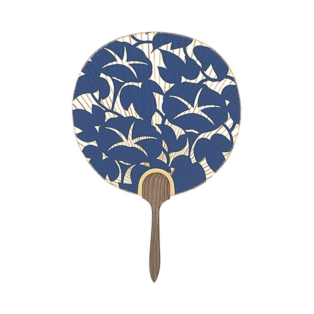 丸型うちわ 団扇 京うちわ 千代女 (青) 片面透かし 2103 塩見団扇 日本製 化粧箱付き