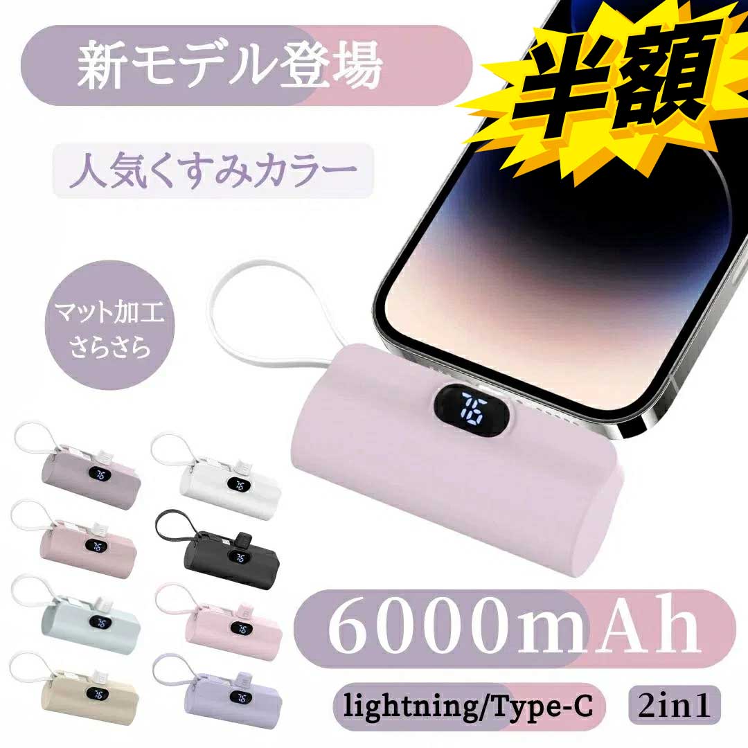 クーポンで最安1230円・SS半額以下!! 【楽天1位●全8色!!】モバイルバッテリー 6000mAh iPhone16対応 軽量 ミニ 小型 大容量軽量 Lightning type-c 内蔵コネクター 急速充電 スマホ充電器 旅行/出張 持ち運び 携帯バッテリー 停電対策 おしゃれ かわいい