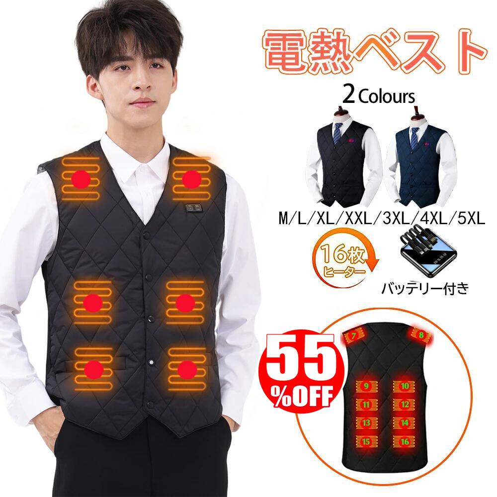 【半額以下×楽天スーパーSALE限定★即日出荷】電熱ベスト インナーベスト 16枚ヒーター モバイルバッテリー付き 電熱インナーベスト ヒーターベスト 男女兼用 usb充電 3段階温度調整 洗濯可 電熱ウェア ヒートベスト 大きいサイズ 速暖 洗濯可 電熱ジャケット ベスト 速暖