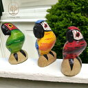 10001358 オウム 鸚鵡 インコ 3カラーセット 鳥の木彫り バリ木彫り アジアン雑貨 小鳥 卓上サイズ