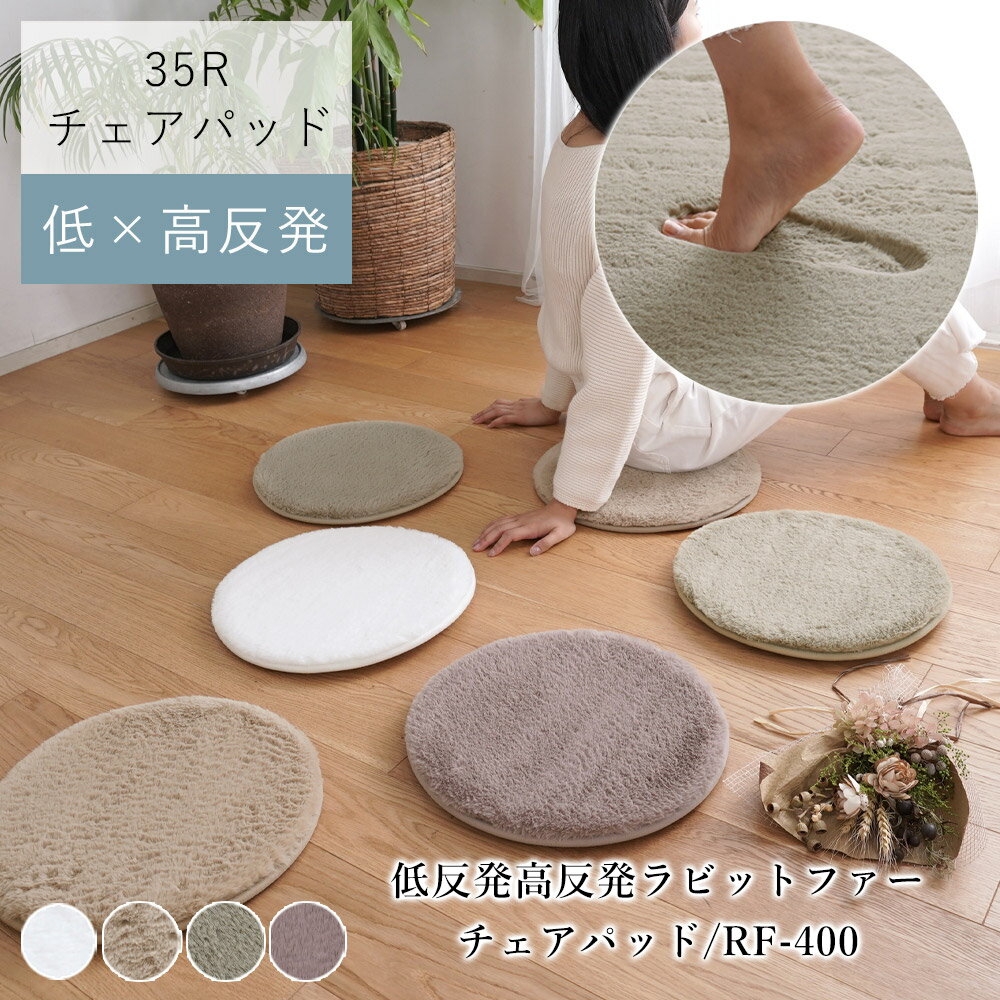 【処分品につき在庫限り】マット チェアパッド 座布団 低反発 高反発 ラビットファー チェアパッド RF-400 約35Rcm(円形) かわいい おしゃれ ふわふわ 厚手 くすみカラー オールシーズン 秋 冬