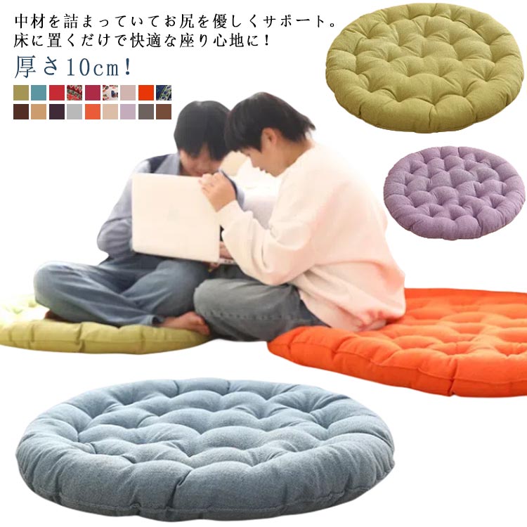 座布団 大きめ 大きいサイズ おしゃれ 丸型 綿麻 クッション シートクッション 畳クッション チェアパッド リビング座布団 円形 畳 家庭用 インテリア 滑り止め シンプル おしゃれ かわいい 厚手 10cm テレワーク 柔らかい