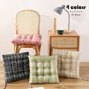 送料無料 40*40cm チェアパッド マット もこもこ フロアクッション 座布団 おしゃれ 正方形 チェック柄 クッション 紐付き チェアマット 高反発 四角形 椅子用 ひも付き 座布団 シートクッション 蒲団 畳 和室 リビング 寝室 在宅勤務 洗える 厚手 滑り止め 床暖房対応 全4色