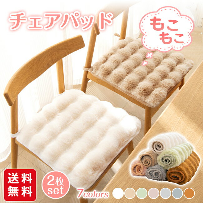 チェアパッド シートクッション 2枚set 座布団 洗える もこもこ 椅子 新生活 滑り止め あったか 無地 シンプル 起毛 秋冬 暖か 厚手 軽量