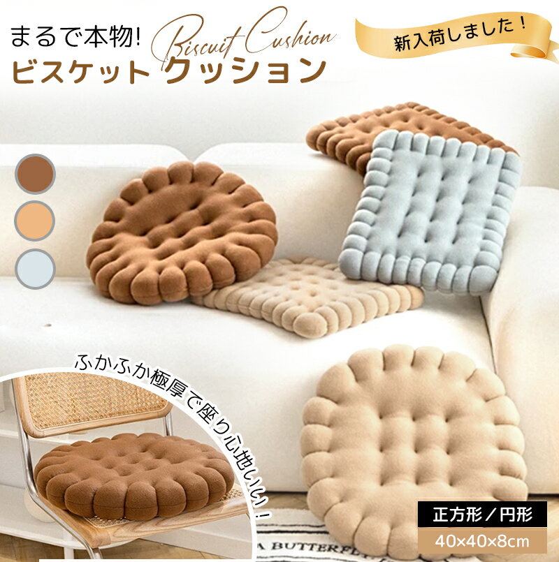 クッション 椅子用 座布団 かわいい おしゃれ シートクッション 車用 ビスケット型クッション 低反発 丸型 フロアクッション 厚手 洗える チェアパッド 座り心地いい ざぶとん 背もたれ 秋冬 インテリア 癒し グッズ ギフト プレゼント