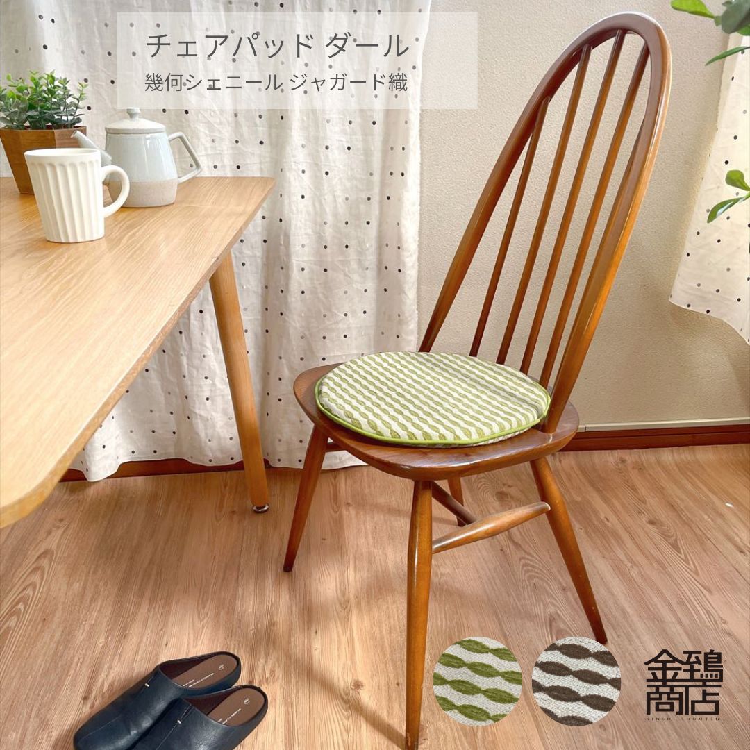 チェアパッド 丸 35x2.5cm ダール 北欧 洗える 金鵄 高反発 座布団 薄型 厚手 生地 かわいい おしゃれ