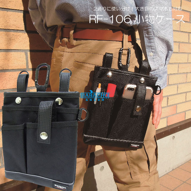 1680Dポリエステル&ナイロン使用でハードな現場に耐える小物ケースです。 用途 道具の収納。 機能 使いやすさを追求した構造、シンプルなデザイン、究極のワーカーズバッグです。 ねじれにくいカラビナ&ベルト通しを採用しています。 仕様 色:ブラック 留め具の種類:ボタン D環付 ベルト幅5cmまで対応 材質 本体:ポリエステル ナイロン カラビナ:アルミニウム 注意事項 用途以外に使用しないで下さい。 幼児の手の届かない場所に保管して下さい。