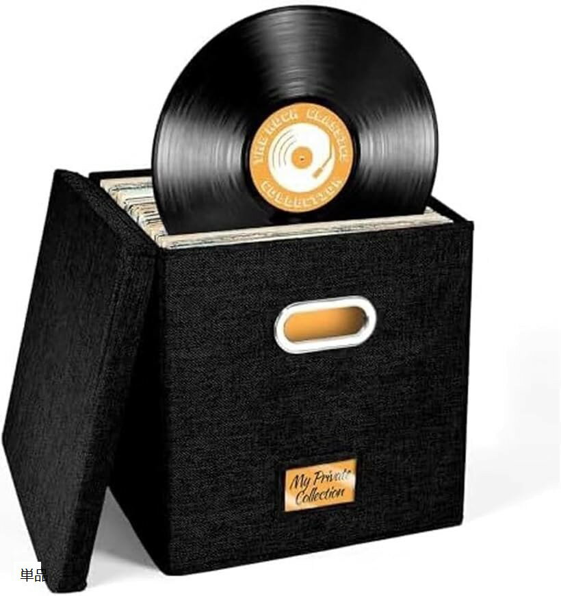 レコード 収納 レコードボックス 蓋付き 収納箱 レコードケース おしゃれ 布製 (ブラック, 2個セット)