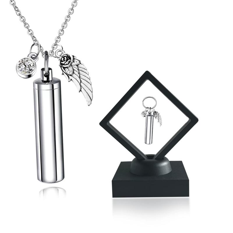 メモリアルペンダント 直方体 誕生石 天使の翼 ラインストーン 手元供養ペンダント 遺骨入れネックレス 取り外し可能 メンズ レディース 記念ジュエリー