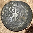 1789 1コペイカ。古いロシア帝国コインのオリジナル。クイン・エカテリーナ。クリーニングされていません。