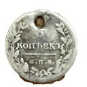 1811 5 コペイカ古いロシア帝国コイン オリジナル。シルバーアレクサンダー1世