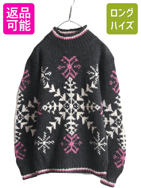【11/23 48h限定555円OFF×P5倍!】 80s ウールリッチ ノルディック ニット セーター レディース M Woolrich 80年代 ヴィンテージ 総柄 ハイネック ウール モックネック 紺タグ| 古着 中古 80's 旧タグ ビンテージ ノルディック柄 デザイン アウトドア ニットセーター 長袖セ