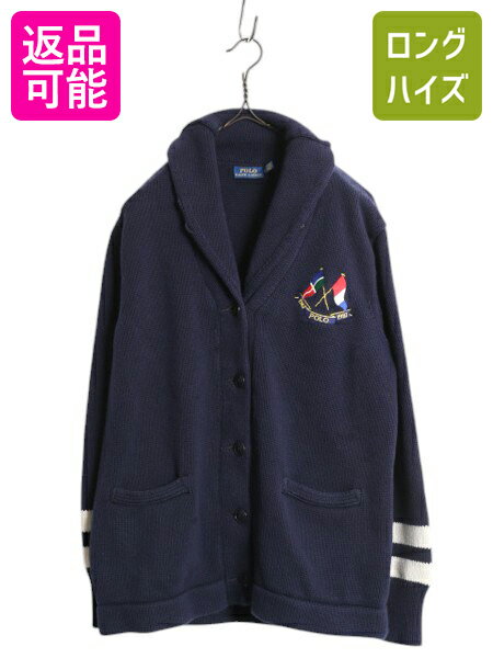 【11/23 48h限定555円OFF×P5倍!】 復刻 20周年 クロスフラッグ ポロ ラルフローレン ショールカラー ニット カーディガン レディース L / コットン セーター 前開き 重ね着| 古着 中古 POLO RALPH LAUREN ニットカーディガン ニットセーター 長袖ニット 長袖セーター ワン