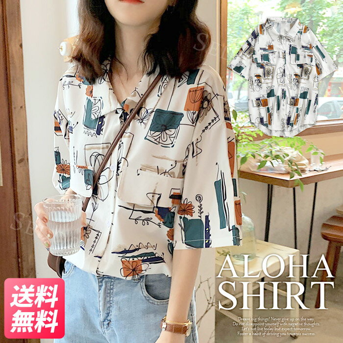 アロハシャツ レディース 大きいサイズ おしゃれ かりゆしウェア 旅行 沖縄 ハワイ グアム イベント ブラウス 総柄 柄シャツ 半袖 半袖シャツ 古着風 レトロ かわいい レディース 春夏 新作 体型カバー カジュアル アロハシャツ レディース
