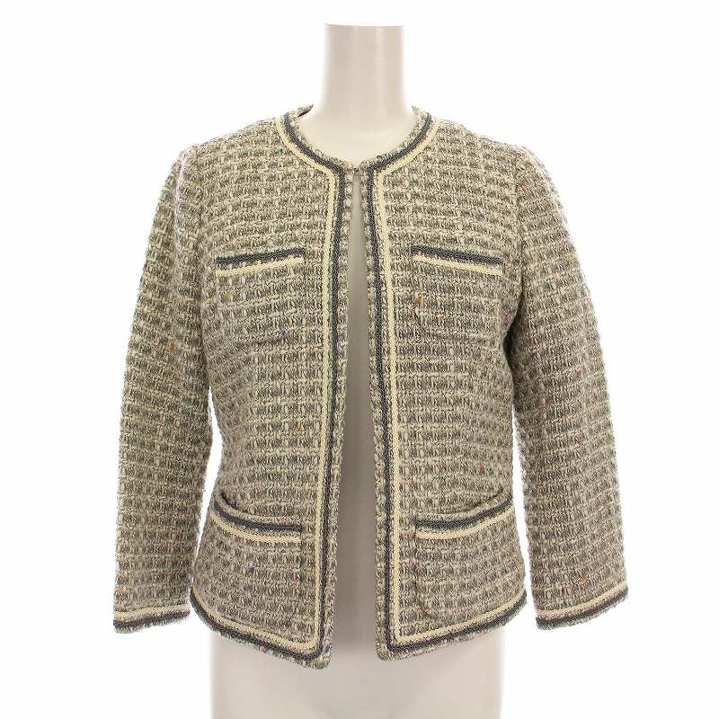 【中古】ロイスクレヨン Lois CRAYON ツイード ノーカラージャケット 刺繍 アウター M グレー 白 14001277 /YM レディース 【ベクトル 古着】 250227