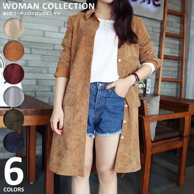 \15%OFF!クーポン/ シャツ ロング丈 シャツワンピース シャツワンピ レディース 【メール便送料無料】 長袖 コーデュロイ コールテン 春 秋 冬 かわいい おしゃれ タック カジュアル ヴィンテージ 風 古着 アウター 羽織り カーキ キャメル ネイ