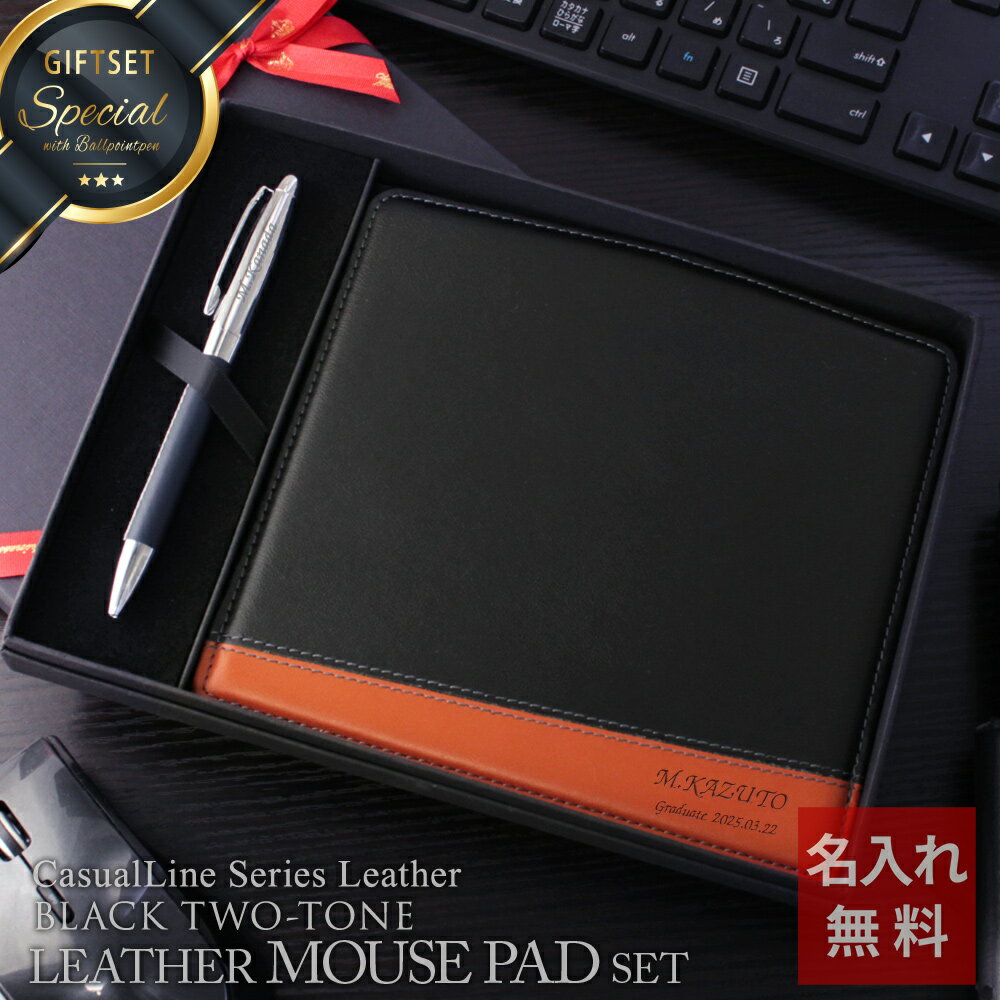 【 名入れ マウスパッド ボールペン 名前入り プレゼント 実用的 ギフト 】ペンギフトセットCLブラックツートンレザーマウスパッド + ボールペン【 おしゃれ 名前入り 大学 就職 誕生日 謝恩会 会社周年 男性 父 50代 60代 上司 彼氏 】