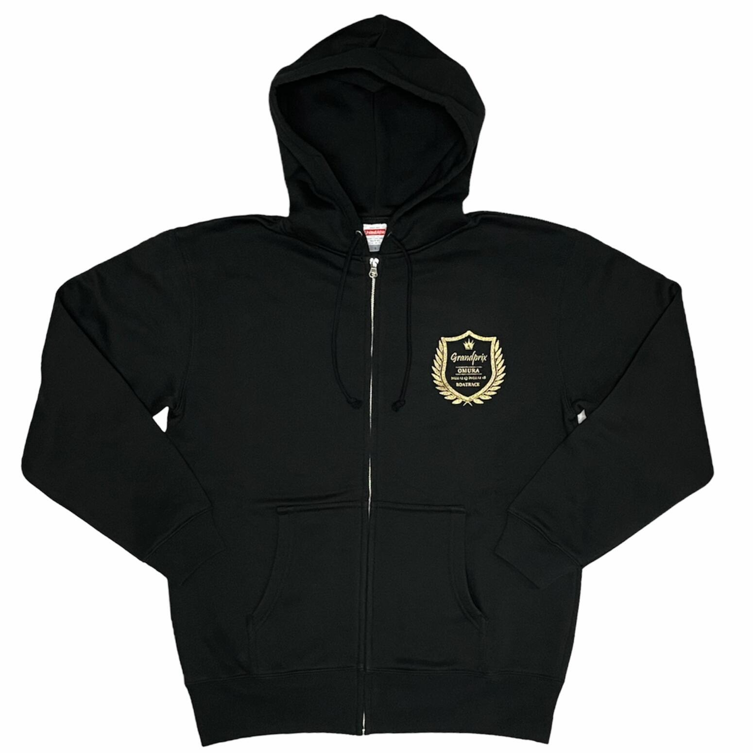 【送料無料【男子レーサー名入り】SG第37回グランプリ記念パーカー|ボートレース大村 長袖 フーディー ジップアップ フード トップス ブラック ゴールド 黒 JLC ボートレース グッズ