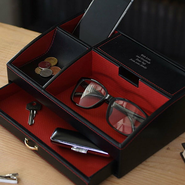ギフト対応携帯電話や時計、メガネ、鍵、小銭など普段使いの小物を一晩あずかってくれるのがオーバーナイター。毎日必要な物を機能的にまとめられる便利な収納トレーです。忙しい朝、昨日着た背広のポケットを慌てて探ることのないように、帰ったらポケットの中の小物はオーバーナイターに一晩預けましょう。右奥フタの天面中央約 25 x 25 mm 内にご希望のメッセージが入ります。文字のカラー : グレーサイズ : 約 W255 x H90 x D180 mm重量 : 約 700 g材質 : 合成皮革 (PU), ポリエステルベルベット etc.ボックス : 約 265 x 185 x 95 mmMADE IN CHINA※ 価格には基本的なプリントが含まれております。※ イメージにはサンプルのメッセージが入っております。実際にはご希望のメッセージで入ります。どのアイテムも内張に赤を効かせつつ、あくまでも印象はクール&スタイリッシュ。男性なら誰もが一度は憧れる、クールさと色気が同居したデザインが魅力です。アクセサリーボックスジュエリーボックスはもちろん、いろいろな用途に使用できるスタイリッシュなケースボックスです。中にアクセサリーを入れてサプライズプレゼントにしたり、コレクションケースやメモリアルボックスとして贈ったり。特別なモノを入れるケースだから、オーダーメイドで特別なメッセージを入れて。モバイルスタンドスマホスタンドはいわば肌身離さず持ち歩く携帯の休憩所。あの人のスマホの、我が家とも言えるモバイルスタンドには、見るとホッと一息つけるメッセージを入れてプレゼントしませんか。メガネ用品遠視や近視用の眼鏡だけでなく、サングラスやPCメガネ、老眼鏡や花粉対策用めがねなど、意外とメガネのお世話になることは多いもの。だから手元に置く眼鏡スタンドやケースには、あなたの気持ちを目に見える形にして。いつも目にしてほしい特別なメッセージを入れて贈りませんか。トレイキートレイに使ったり、デスクの小物をまとめたり、外したアクセサリーをちょっと置くジュエリートレイにしたり、灰皿にしたり。置いてあるだけでオシャレなトレイは結構便利もの。ありきたりのプレゼントでは満足しない方に、とっておきのメッセージを入れたトレイはいかが?【商品説明】携帯電話や時計、メガネ、鍵、小銭など普段使いの小物を一晩あずかってくれるのがオーバーナイター。毎日必要な物を機能的にまとめられる便利な収納トレーです。忙しい朝、昨日着た背広のポケットを慌てて探ることのないように、帰ったらポケットの中の小物はオーバーナイターに一晩預けましょう。右奥フタの天面中央約 25 x 25 mm 内にご希望のメッセージが入ります。文字のカラー : グレーサイズ : 約 W255 x H90 x D180 mm重量 : 約 700 g材質 : 合成皮革 (PU), ポリエステルベルベット etc.ボックス : 約 265 x 185 x 95 mmMADE IN CHINA※ 価格には基本的なプリントが含まれております。※ イメージにはサンプルのメッセージが入っております。実際にはご希望のメッセージで入ります。ご注文のステップ※ 次のご注文のステップをお読みの上ご注文ください。メッセージを考えてください。誕生日結婚祝い出産祝い新築祝い開店祝い成人・就職ウェディング母の日父の日感謝還暦・長寿お祝い表彰・受賞励まし退職送別卒業多目的ラブプロポーズフレンドファミリークリスマスご希望の書体 (字体) を「フォントを選ぶ」から1つお選びください。※ 2種類のフォントを使ったり、日本語と英語に別のフォントを使うことも可能です。ご希望の内容を連絡事項欄にご記入ください。ラッピングをご希望の方は「ラッピングを選ぶ」からお選びください。リボンシールまたは「のし」をご希望の方は「リボンシール/のしを選ぶ」からお選びください。商品に入れるメッセージは備考欄にご入力ください。ご注文後、楽天から「ご注文内容確認 (自動配信)」メールが届きます。ご注文後のステップ※ 商品の性質上、ご注文確定後の変更はできません。※ オリジナル商品のため、発送は手配を始めてから約1週間後となります。「ご注文確定のお知らせ」のメールが届いたことをご確認ください。ご注文内容にご確認が必要な場合翌営業日中に「ご注文内容の確認と次のステップについて」メールが届きますので、内容をご確認いただき、ご注文内容了承の旨、または変更内容をご返信ください。ご返信後に手配を始めます。ご注文内容に問題がない場合「ご注文確定のお知らせ」メールを送信後に手配を開始します。※ 銀行振込/コンビニ決済を選択されている方は、ご入金確認後に手配を始めます。【用途】名入れアクセサリーボックス 名入れメガネ用品 名入れトレイ 彼氏へのクリスマスプレゼント
