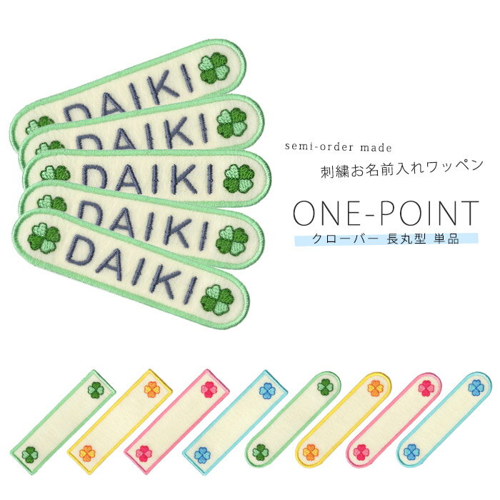 【楽天限定セール】刺繍お名前入れワッペン ワンポイント 5枚セット クローバー ネーム 名札 名入れ アップリケ ひらがな カタカナ 漢字 ローマ字 英数字 入園 入学 アイロン接着