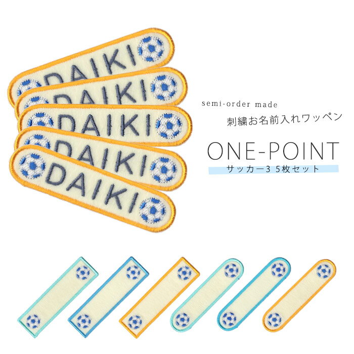 【楽天限定セール】刺繍お名前入れワッペン ワンポイント 5枚セット サッカーボール3 ネーム 名札 名入れ アップリケ ひらがな カタカナ 漢字 ローマ字 英数字 入園 入学 アイロン接着