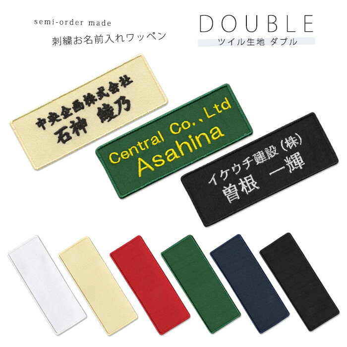刺繍お名前入れワッペン ツイル生地のセミオーダーネームワッペン*ダブルタイプ お名前 ネーム 刺繍 会社名 名札日本製 国内生産 入園 入学 アイロン接着