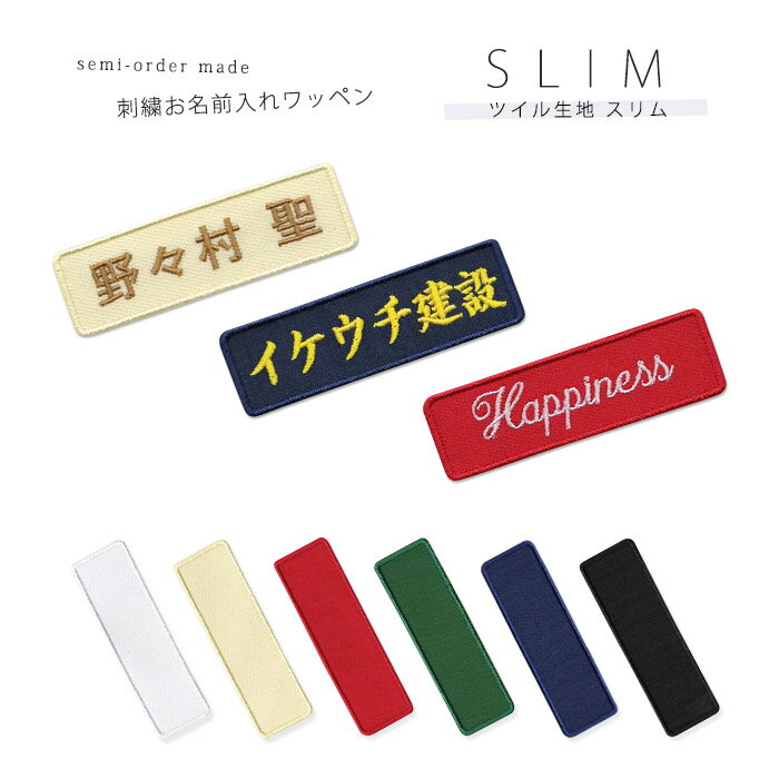 刺繍お名前入れワッペン ツイル生地のセミオーダーネームワッペン*スリムタイプ お名前 ネーム 刺繍 会社名 名札日本製 国内生産 入園 入学 アイロン接着