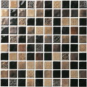 こちらは後払い決済不可商品となります。クレジットカード決済/コンビニ決済もしくは銀行振込にてお申し付けください。 シート当個数:12×12個 目地幅(縦):2mm 目地幅(横):2mm ■スペック■ 形状:23角 [裏ネット貼り] 標準寸法:約23×23mm 厚さ:約8mm 目地共寸法:約300×300mm m²当必要枚数:11.5シート/m² ケース入数:11シート ケース重量:17kg ●当商品のご注文につきまして● ケース(入数)に満たない数量での出荷の場合、1品番(1種類)につき616円(税込)の荷造り手数料が発生いたします。 ご注文後、弊社にて金額変更を行います。確定金額はメールにてお知らせいたします。 【商品についてのご注意】 ●ガラス製品は、身体を傷つける恐れがありますので取扱いには十分注意してください。 ●この製品をご使用の際は、総合カタログに記載しています「ガラス製タイルをご使用の前に」をご確認ください。 ●意匠上大きな色むらと色幅があります。 ●4種類の加工を施したガラス製タイルのランダムミックスです。 ●メンテナンスには、酸性やアルカリ性の洗剤・クレンザーは使用しないでください。 ●浴室など温度差の激しい場所では、熱膨張の繰り返しによる破損が生じる場合がありますので、使用場所にご注意ください。 ●製品写真の目地は、「アートパステルメジ」AMJ-P00です。 ●目地の間から連結材が見えます。裏ネットの色は白色です。 ●輸入品につき在庫と納期をご確認ください。なお予告なしに仕様の変更や生産中止となることがあります。 ●サイズ表示は標準寸法です。ロットにより寸法誤差がありますので、タイル割付けの際はご注意ください。 【施工上のご注意】 ●表面に凹凸がありますので目地残りにはご注意ください。 ●カットの出ないような割付け・納まりにしてください。 ●切断する場合には、タイルカッター・ガラスカッターを使用し、切断面は砥石で研磨して、けがをしないようご注意ください。サンダーによる切断は、事故の原因・製品の破損となり大変危険ですのでおやめください。 ●接着剤は白色を推奨しています。 ●接着および目地詰めが不十分な場合、ガラスを透過して隙間が見えることがありますのでご注意ください。 ●接着剤のクシ目が透けて見える場合がありますので、接着剤表面は必ず平面に仕上げて張付けてください。また、タイル裏面に空気が残らないようにご注意ください。 ●送料に関する注意点● こちらの商品の送料につきましては送料表の「260サイズ」を参照願います。 楽天のシステムでは1個購入の場合の送料は表示されますが、複数商品を購入した場合は送料が表示されません。 ご注文後、当店よりメールにて送料をお知らせしますので、ご了解下さい。 ●価格は1シートの価格ですリッチなブラウントーンのモザイク。ガラス8mm厚の奥行きやラメ、表面や裏面に施したレリーフが反射して豊かな輝きを見せます。