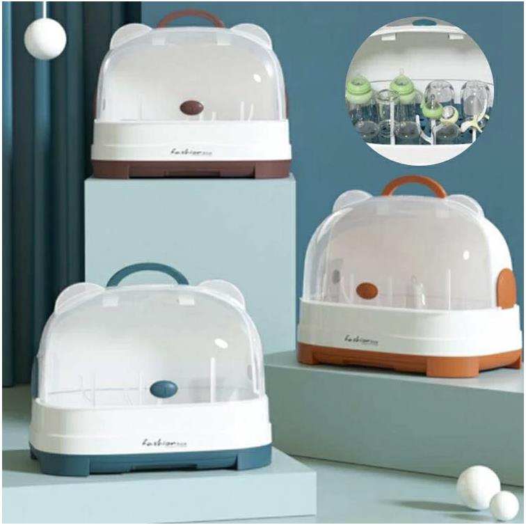 哺乳瓶乾燥収納ボックス 防塵乾燥ラック 哺乳瓶立て カップ収納 食器収納ボックス 新生児プレゼント B 水切りラック 台所用品収納ボックス キッチン収納 衛生 便利 ほこり防止 哺乳瓶ケース 哺乳用品収納ケース デザイン4 蓋付き