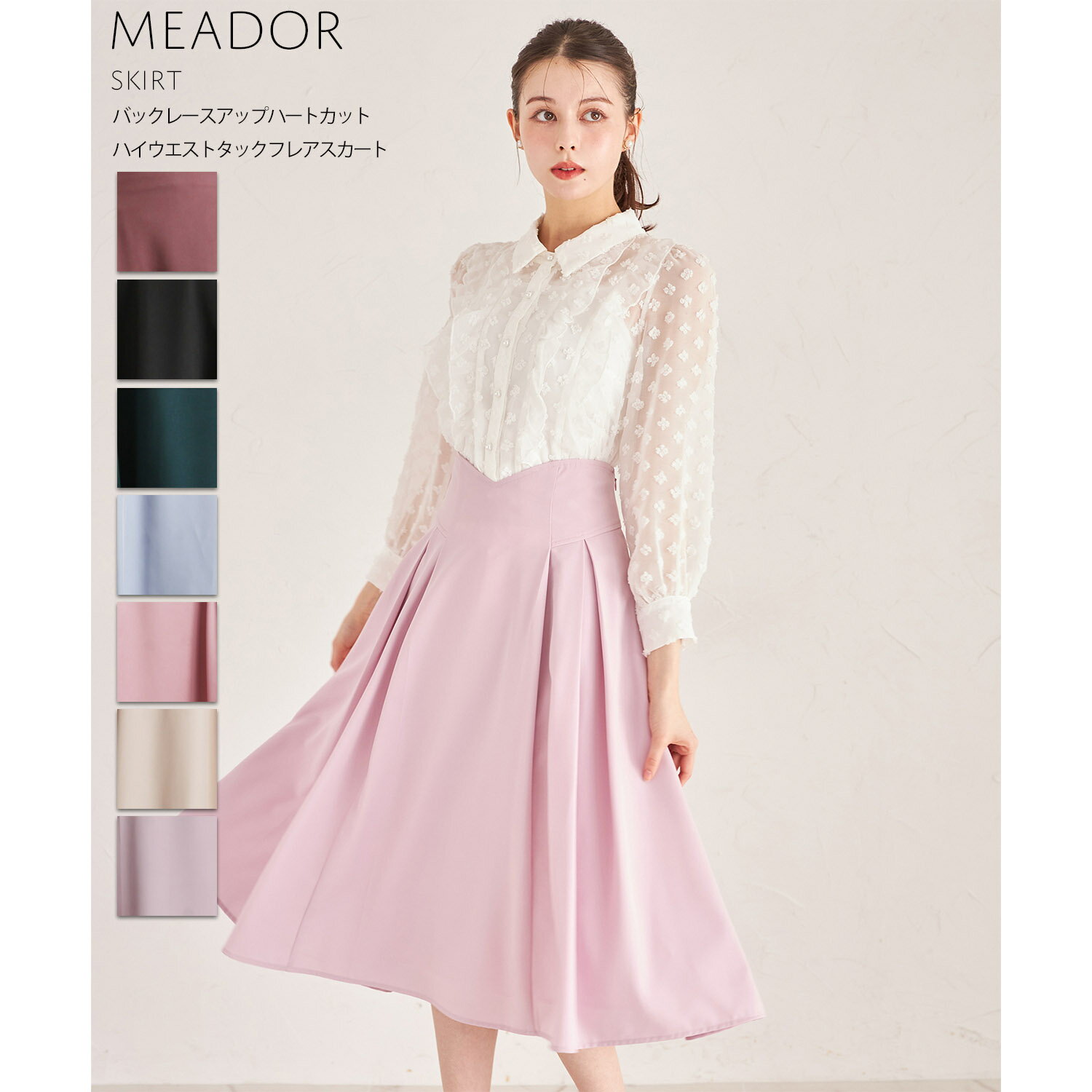 バックレースアップハートカットハイウエストタックフレアスカート【meador ミドア】tocco closet(トッコクローゼット) ピンク ブラック グリーン 商品番号:186-178414