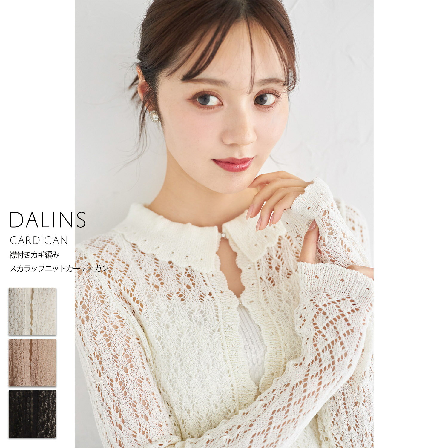 襟付きカギ編みスカラップニットカーディガン【dalins ダリンス】tocco closet(トッコクローゼット) オフホワイト ピンク ネイビー 商品番号:186-195882