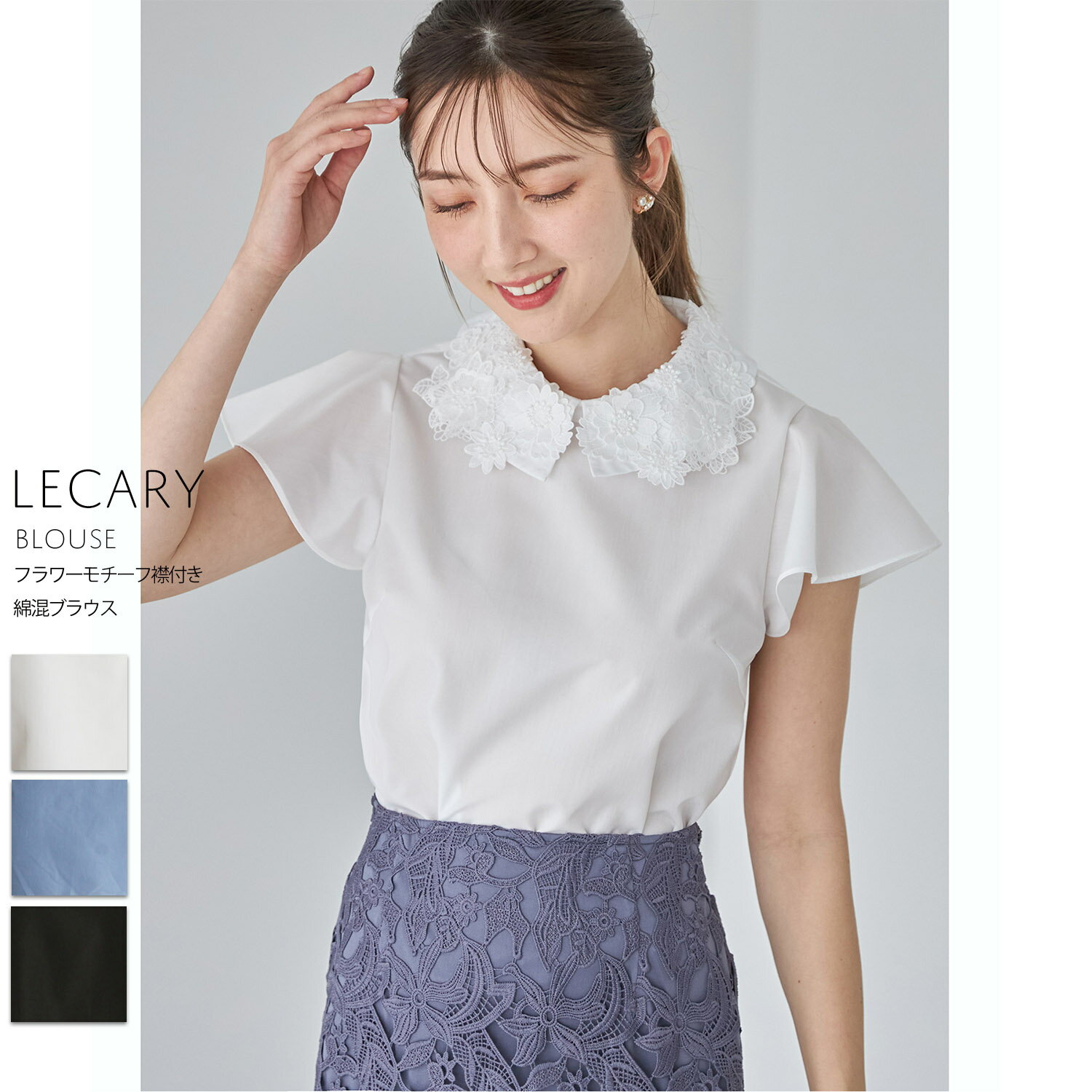 フラワーモチーフ襟付き綿混ブラウス【lecary レカリー】tocco closet(トッコクローゼット) オフホワイト ブルー ブラック 商品番号:186-183834