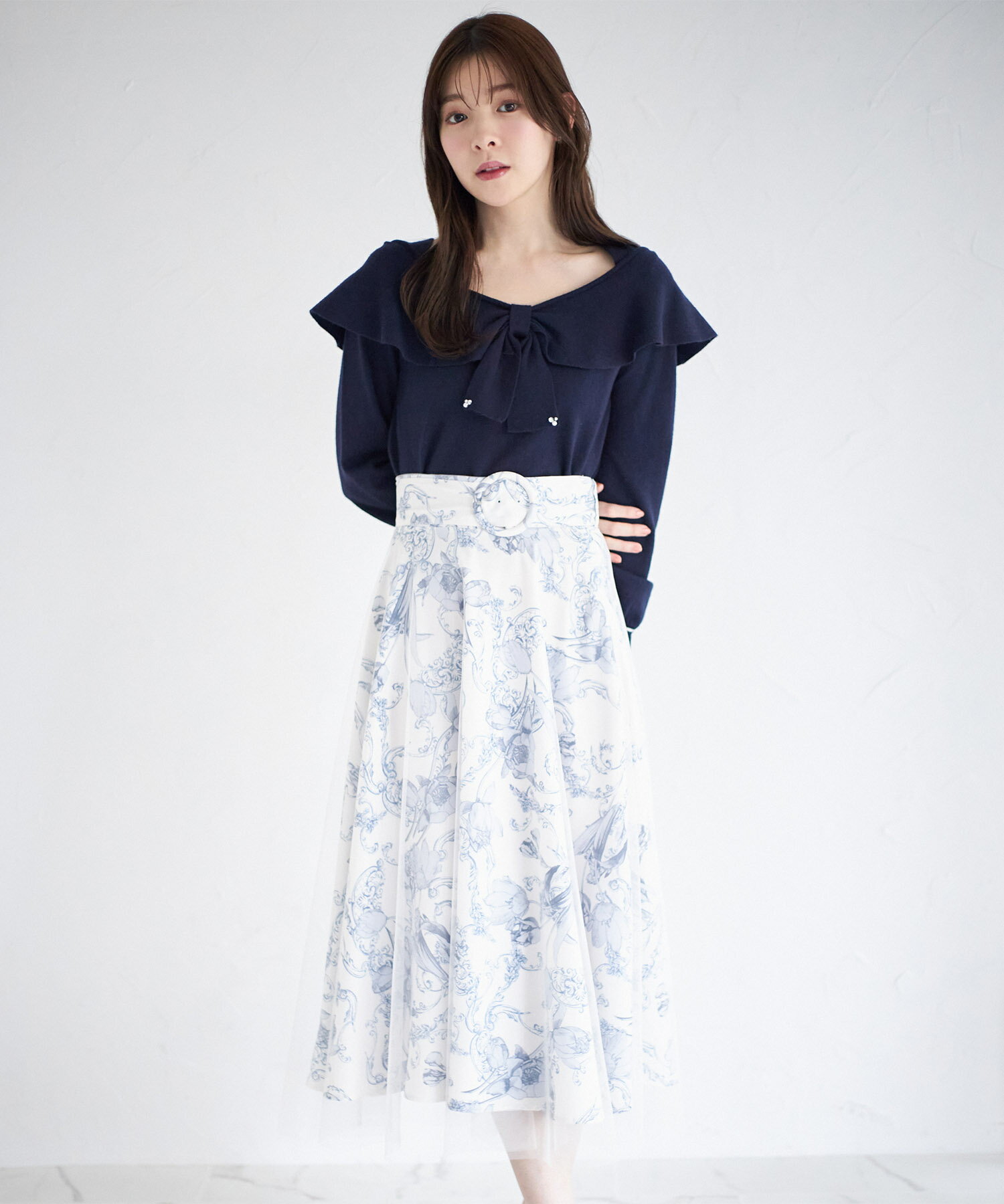 【masion】 ベルト付きフラワープリントチュールスカート クラシカルな洒落感のフラワープリント生地と 軽やかなチュール生地を重ねたスカート。 ふんわりフレアシルエット+ミモレ丈で 裾の透け感を楽しみながら愛らしく着映えます♪ くるみバックルベルトでウエストをマークし、 ナチュラルに細見えを叶えます◎ #32 ブルー model:167cm #157 グレイッシュピンク model:167cm Detail Color ●サイズは平置きサイズとなりますので測り方により誤差が出る場合がございます。 ●色合いはモニター環境により若干の誤差が出ます。 ●ライティングや天候によりモデル画像と物撮り画像のカラーに違いある場合、物撮り画像の方が 実際のカラーに近い状態で撮影されておりますので、そちらを参考にしてくださいませ。 NO 186-182090 ITEM クラシカルな洒落感のフラワープリント生地と 軽やかなチュール生地を重ねたスカート。 ふんわりフレアシルエット+ミモレ丈で 裾の透け感を楽しみながら愛らしく着映えます♪ くるみバックルベルトでウエストをマークし、 ナチュラルに細見えを叶えます◎ Material 表地:ポリエステル100% 裏地:ポリエステル100% Detail 総丈:チュール86cm/フラワープリント79cm 裾幅:190cm ウエスト周囲:64cm ※ウエスト後ろゴム仕様 ※サイドファスナーあり Color #32 ブルー/ #157 グレイッシュピンク/ Attention ●サイズは平置きサイズとなりますので測り方により誤差が出る場合がございます。 ●色合いはモニター環境により若干の誤差が出ます。 ●ライティングや天候によりモデル画像と物撮り画像のカラーに違いある場合、物撮り画像の方が 実際のカラーに近い状態で撮影されておりますので、そちらを参考にしてくださいませ。