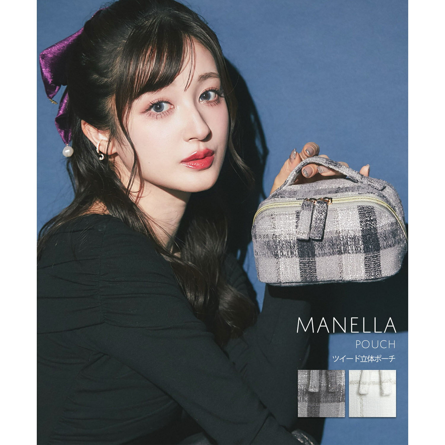 【manella】 ツイード立体ポーチ 新希咲乃さんとのコラボアイテム。 上品なチェック柄のツイード素材で仕立てた、 高級感のあるバニティ型ポーチです。 小さなハンドル付きだから持ち運びもスムーズ♪ 内側にはポケットが付いており、 コスメや小物の整理もばっちりです◎ 旅行やお出かけはもちろん、 普段使いにもぴったりな万能アイテム! #15 グレー #49 オフホワイト Detail Color ●サイズは平置きサイズとなりますので測り方により誤差が出る場合がございます。 ●色合いはモニター環境により若干の誤差が出ます。 ●ライティングや天候によりモデル画像と物撮り画像のカラーに違いある場合、物撮り画像の方が 実際のカラーに近い状態で撮影されておりますので、そちらを参考にしてくださいませ。 NO 186-200000 ITEM 新希咲乃さんとのコラボアイテム。 上品なチェック柄のツイード素材で仕立てた、 高級感のあるバニティ型ポーチです。 小さなハンドル付きだから持ち運びもスムーズ♪ 内側にはポケットが付いており、 コスメや小物の整理もばっちりです◎ 旅行やお出かけはもちろん、 普段使いにもぴったりな万能アイテム! Material 表地:ポリエステル100% 裏地:ポリエステル100% Detail 高さ:約9cm 横幅:約15cm マチ幅:約8cm 取手長さ:約15cm×約2.5cm Color #15 グレー/ #49 オフホワイト/ Attention ●サイズは平置きサイズとなりますので測り方により誤差が出る場合がございます。 ●色合いはモニター環境により若干の誤差が出ます。 ●ライティングや天候によりモデル画像と物撮り画像のカラーに違いある場合、物撮り画像の方が 実際のカラーに近い状態で撮影されておりますので、そちらを参考にしてくださいませ。