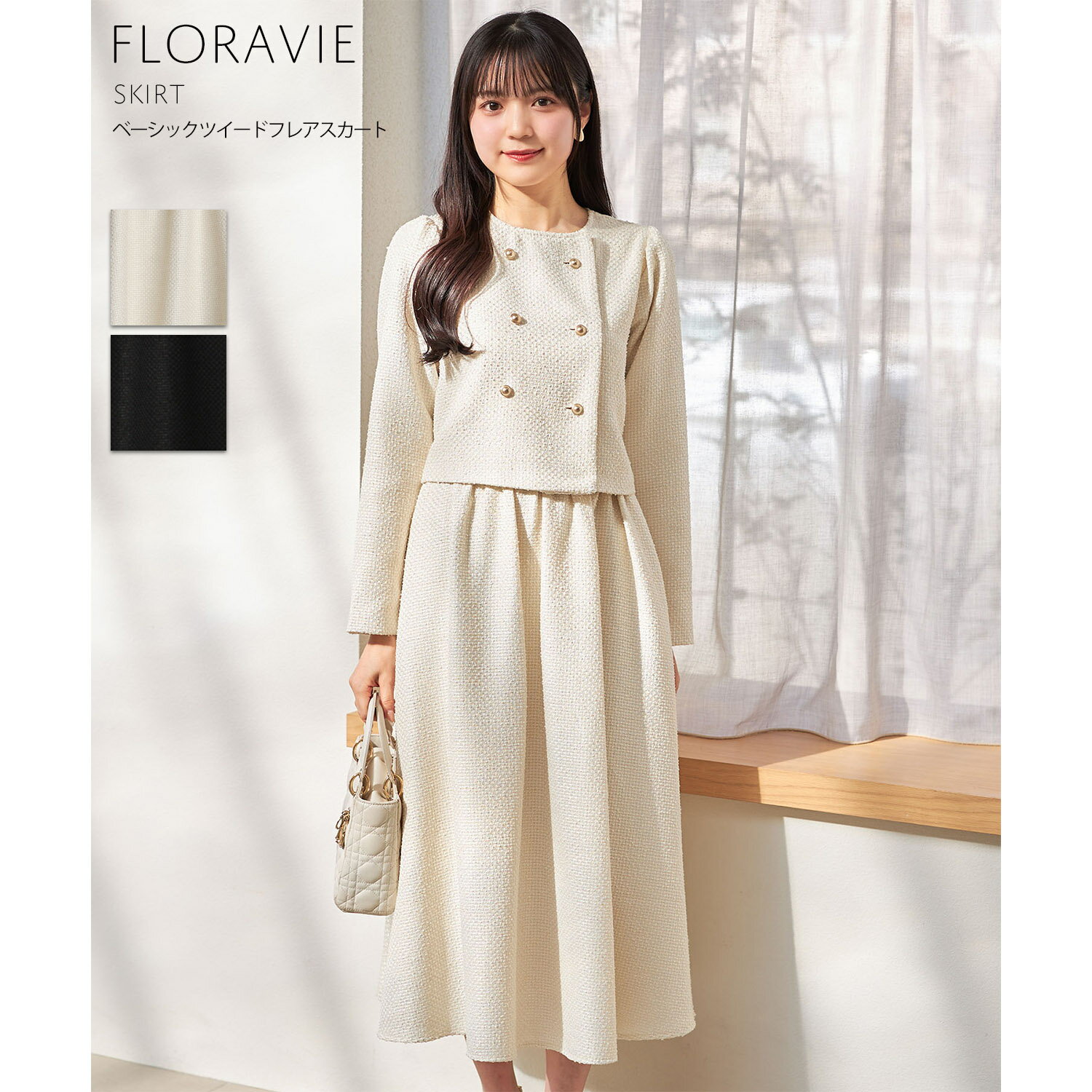 ベーシックツイードフレアスカート【floravie フロラヴィー】tocco closet(トッコクローゼット) アイボリー ブラック 商品番号:186-193087
