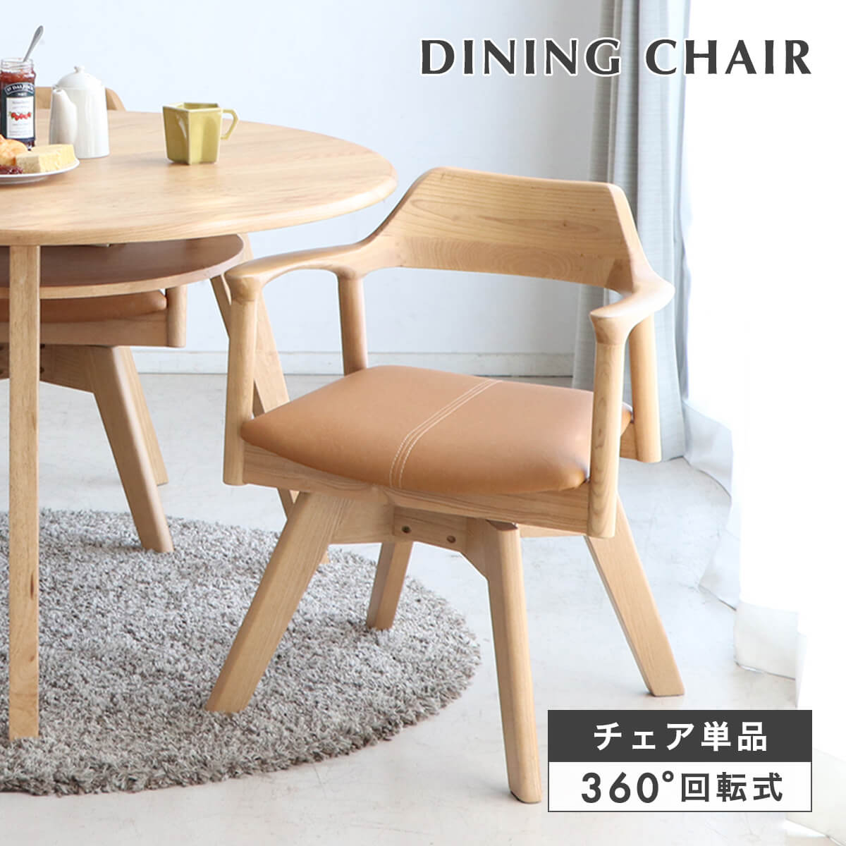 ★ダイニングチェア 回転 肘付 北欧 ダイニング チェア 単品 幅 57 cm 座面高 73cm 回転椅子 椅子 おしゃれ 木製 食卓椅子 イス シンプル かわいい いす 木製チェア 合成皮革 PVCレザー 天然木 ナチュラル 「商:大」「才:7」
