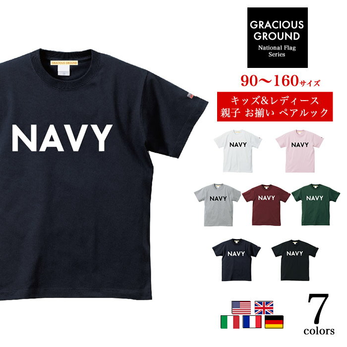 \お得なクーポン配布中/【メール便 送料無料】NAVY ロゴ Tシャツ キッズ レディース ペアルック カップル 半袖 誕生日 プレゼント ギフト Tシャツ 選べる 袖 国旗 刺繍 ワッペン アメカジ ロゴ アーミー ロゴ プリント 男女兼用 お揃い 5.6オンス