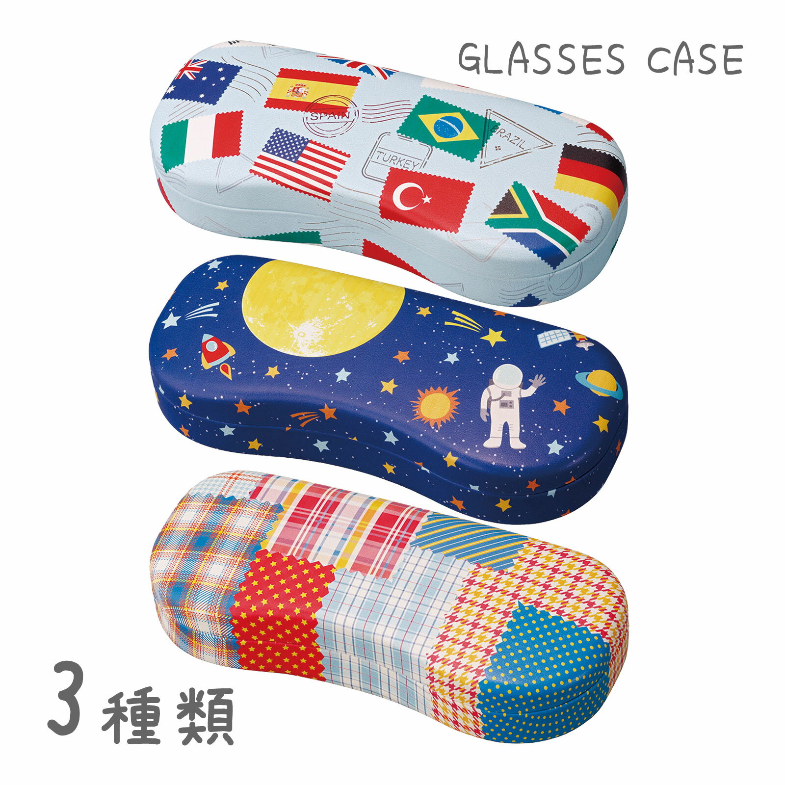 メガネケース 眼鏡ケース ハード おしゃれ レディース メンズ バネ式 持ち運び HO-1/HO-2/HO-3 めがねケース 大人 かわいい 国旗 スペース パッチワーク ホワイトデー お返し プレゼント ギフト