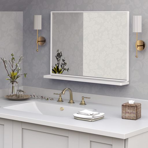 ANYHI長方形鏡壁掛け収納、壁掛けミラーホワイト洗面所ミラー壁掛け収納80.7x62cm