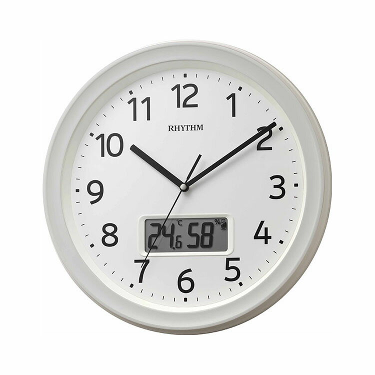 リズム時計工業 RHYTHM 電波 壁掛け時計 フィットウェーブリブA02 8FYA02SR03 白 ホワイト 温度計 湿度計 カレンダー アナログ デジタル 贈り物 周年 創業 新築祝い 引越し祝い 竣工 定年 退職 入学 卒業 還暦 古希 長寿 引き出物 熨斗がけ 御礼 包装