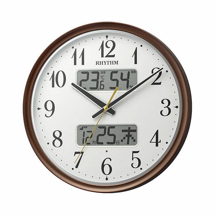 ※楽天市場の共通送料込みライン導入に伴い、誠に申し訳ございませんが、沖縄県宛のご注文は承れません(ネコポス、メール便は除く)。※製造時期により、電池が同梱されていない場合がございます。[メーカー]リズム時計工業[ブランド]RHYTHM リズム[型番]8FYA04SR06[商品状態]新品[保証]1年間メーカー保証[納期]メーカー取り寄せ約3〜6営業日後発送[仕様]サイズ:Φ344×52・約1.3カラー:茶メタリック(白) 材質:プラスチック枠/ガラス製[機能]電波受信機能連続秒針(夜眠る秒針)電波OFF機能・サーチ機能暗所自動点灯機能カレンダー表示付(2099年12月31日まで表示可能)温度表示(-9.9〜49.9℃)湿度表示(20〜90%)電池交換お知らせ機能アルカリ単3乾電池×6※商品の配色、表面仕上、重量、操作部品などの仕様は改良のため変更することがありますのでご了承願います。お祝い・お返しなどにぴったりなシチズンクロック! ラッピング、熨斗無料!文字入れも可能!(有料) 大量注文承ります! ◆リズム時計(シチズンクロック)はラッピング、熨斗無料で承っております。ご注文時にご選択いただけます。熨斗の表書は備考欄やメールでお申し付け下さい。※大型商品、ラッピング不可商品を除く。 ◆クロックに記念に残るという点で、結婚祝、新築祝、開店祝などに文字入れをして贈られていかがでしょうか?ご希望の文字をメール・FAXにてご連絡頂けましたら、詳しい納期、ご請求金額などをご連絡いたします。 大量注文も承りますのでお気軽にお問い合わせください。 ※ご注文後約1〜2週間でお届けします。 ※文字入れの場所は時計裏、電池蓋または時計の縁(スペースがある場合)となります。 ※文字色は金色となります。 ギフト対応