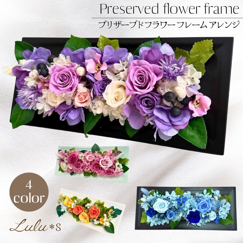 Lulu*s 〜ルルズ〜Lulu*s ルルズ では、贈り物 ギフト プレゼント 等にも 喜ばれる 日本製 国内産 にこだわった 専門店 で、ハーバリウム アクセサリー アクセ ハンドメイド ピアス ネックレス イヤリング ヘッドドレス ミニハット ヘアアクセ プリザーブドフラワー ブリザードフラワ- ブリザーブドフラワー プリザ 枯れない花 フラワーフォトフレーム フォトフレーム 髪飾り ナチュラルリース スワッグリース リース アーティフィシャルフラワー 造花 ブーケ お供え花 ガーランド キャンドル ウェディング ブライダル 似顔絵 イラスト 命名 時計 フラワー時計 花時計 仏花 在庫あり など多数の商品を取り扱っております。 ご用途&贈る先誕生日プレゼント 出産祝い 誕生日祝い フラワーギフト お祝い 誕生日 結婚記念日 還暦 古希 喜寿 米寿 卒寿 白寿 百寿 プロポーズ 大還暦 還暦祝い お礼 引越し祝い 結婚祝い 結婚式 電報 新築祝い 開業祝い 開店祝い 記念日 改築祝い 御礼 発表会 楽屋見舞い フラワー ビジネス 法人ギフト 金婚式 銀婚式 花婚式 贈り物 コンサート ホームパーティ イベント 個展 展覧会 展示会 開店 オープン 御祝 快気祝い 退職 お礼 転勤 異動 送別会 お供え お悔やみ 仏花 仏壇用 供花といった様々なシーンでご利用いただけます♪女性 女友達 男性 女の子 母 父 祖母 祖父 義母 義父 上司 同僚 先生 担任 先輩 同僚 子ども 友人 友達 お母さん お父さん おじいちゃん おばあちゃん10代 20代 30代 40代 50代 60代 70代 80代 90代 (幅広い年齢層の方にお送りいただけます。) 贈り物の季節1月 お正月 門松 正月 お正月飾り 成人式 成人の日 成人祝い 寒中見舞い 喪中お見舞い 愛妻の日 2月 バレンタインデー プレゼント フラワーバレンタイン 本命 義理 合格祝い 節分 3月 ひな祭り ひなまつり 雛祭り 初節句 お節句 ホワイトデー お返し 卒業式 卒園式 卒業祝い 退職祝い 定年 送迎会 離任式 就職祝い 昇進祝い 春のお彼岸 送別会 ありがとうの日 4月 入学式 入園式 入学祝い 就職祝い 歓迎会 歓送迎 新生活 オレンジデー 5月 母の日 母の日ギフト 母の日プレゼント カーネーション 端午の節句 6月 父の日 父の日ギフト お中元 サマーギフト 7月 七夕 お中元 父 お盆 暑中見舞い 8月 お盆 帰省 残暑見舞い 花の日 9月 敬老の日 ギフト 秋のお彼岸 十五夜 10月 ハロウィン ボスデー 孫の日 11月 いい夫婦の日 七五三 12月 お正月の準備 ウインターギフト クリスマス クリスマスプレゼント お歳暮 選べる4色のプリザーブドフラワーフレーム。生花を特殊加工したプリザーブドフラワーを木製フレームにアレンジ。壁掛け・卓上・立てかけの3WAY仕様で、暮らしにやさしい彩りを添えます。ギフトにそのままお渡しできるクリアケース付き。 【シリーズの特長】 みずみずしさが長く続くプリザーブドフラワーを採用。水やり不要でお手入れが簡単。ナチュラルな木製フレームが花の色を引き立て、和洋どちらの空間にもなじみます。玄関、リビング、寝室、書斎など場所を選ばず飾れます。 【選べるカラー】 ピンク:やわらかい色合いで感謝やお祝いの気持ちを上品に伝えたい時に。母の日、誕生日、退職祝いにおすすめ。 イエロー:明るく前向きな印象。出産祝いや新築祝い、開店祝いなど新しい門出の贈り物に。 パープル:落ち着きと気品のある印象。年上の方や目上の方への贈り物、和の空間にも合うカラー。 ブルー:清潔感と透明感が魅力。男性へのギフトや結婚祝い、記念日のプレゼントにも。 【使い方の幅広さ】 壁掛けや棚の上に置いて飾るほか、写真立てやオブジェと一緒にディスプレイするとインテリアコーディネートがまとまります。ケースのままでも埃がつきにくく、美しさを長く保てます。 【おすすめのギフトシーン】 誕生日、記念日、母の日、敬老の日、結婚祝い、出産祝い、新築祝い、退職祝い、還暦祝い、開店祝い、送別やお礼の贈り物など幅広く活躍します。 【サイズ・仕様】 サイズ目安:縦約21cm × 横約21cm × 奥行約5cm 素材:プリザーブドフラワー、ドライフラワー、木製フレーム、リボンなど カラー:ピンク/イエロー/パープル/ブルー(4色展開) 付属品:クリアケース 生産国:日本(ハンドメイド) 【品質と個体差について】 一点ずつ手作業で制作しているため、花材の配置やサイズ、色味には若干の個体差があります。写真と全く同一ではない場合があります。 【取り扱いと保管】 直射日光や高温多湿を避け、風通しのよい場所でお楽しみください。小さなお子様やペットの手の届かない所に設置してください。 【シリーズの魅力】 ナチュラルな木目と上品な花色の組み合わせは、北欧テイストやシンプルモダン、和モダンにも相性が良く、季節を問わず通年で飾れます。色ごとに雰囲気が異なるため、お部屋や贈る相手に合わせて選べます。