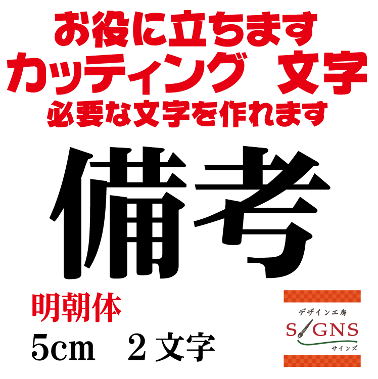 備考 カッティングシート 文字 文字シール 切り文字 製作 通販 屋外耐候 販促 集客 売上アップに 看板 案内板 必要なカッティング文字を作れます。 明朝体 黒 5cm オリジナルグッズ